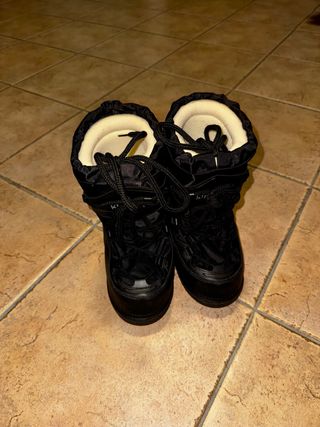 Scarponi invernali modello moon boots. - Misura 32-34. - Colore nero. - Fodera interna calda e imbottita. - Chiusura con lacci.