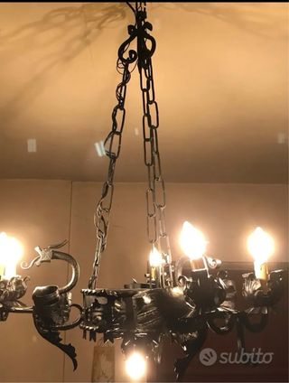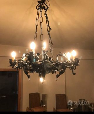 Lampadario ferro battuto vintage restaurato