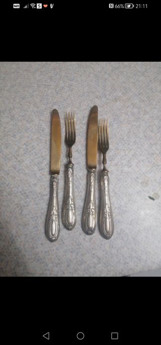 Posate argento 800 composte da 2 forchetthe e 2 coltelli. Più coltellino da burro