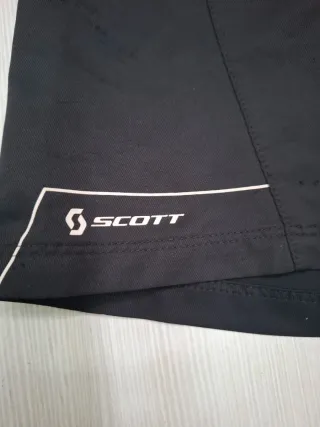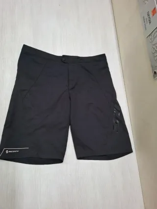 Pantaloncini da mountain bike Scott di colore nero. - Logo Scott sul fondo. - Dettaglio logo sul lato destro. - taglia M - piccolo strappo sul posteriore visibile in foto