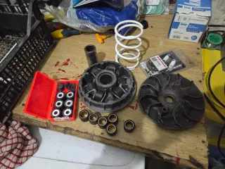 Variatore completo di semipuleggia originali per Honda SH 300 In più do 3 kit mollettone frizione tra cui un kit bianche malossi 2 kit originali originali 1 molla di contrasto bianca malossi 3 set di rulli tra cui 2 set malossi 1 top performance e cursori Praticamente tutto quello che vedete in foto
