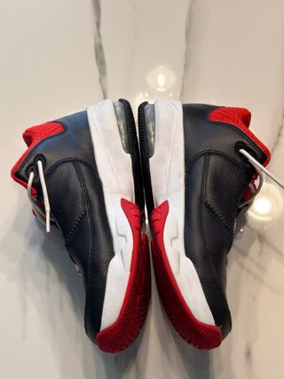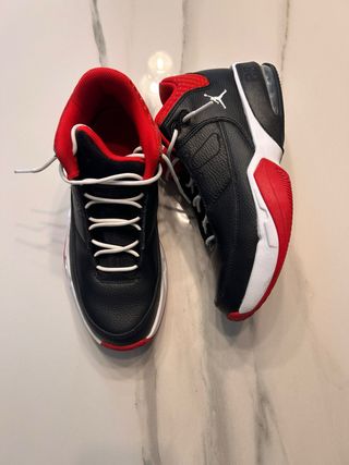 Scarpe sportive Jordan da uomo. - Tomaia in pelle nera. - Dettagli rossi. - Logo Jordan bianco sul lato.