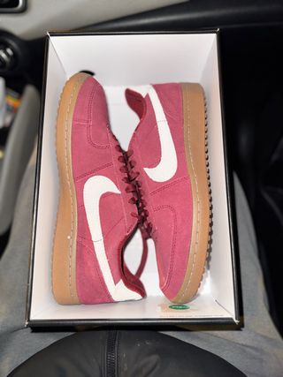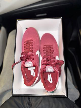Scarpe Nike in camoscio con suola in gomma. - Tomaia in camoscio rosso. - Dettagli bianchi. - Suola in gomma marrone.