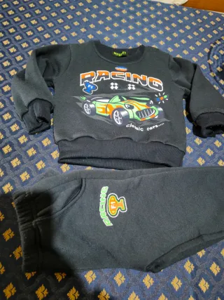 Completo tuta per bambino con stampa Racing e auto da corsa.Taglia 18 mesi. - Felpa rossa con stampa. - Pantaloni blu scuro. - Stampa Racing anche sui pantaloni.
