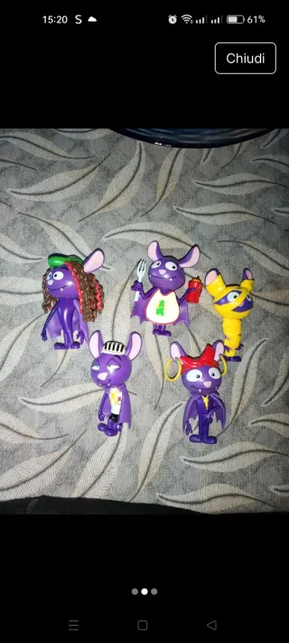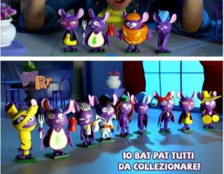 Set di personaggi della collezione Bat Pat. - Personaggi in plastica viola.Si tratta di action figure da collezione di Bat Pat il protagonista dell'omonima serie animata. • I personaggi sono alti circa 10 cm. • La collezione, prodotta da Sbabam, presenta Bat Pat in vari costumi e travestimenti.Un pezzo 7 euro