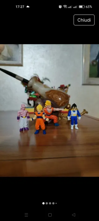 Set di action figure della serie Dragon Ball Z.Collezione comprende 2 Goku ,Vegeta e Mjin Bu altezza 3 cm.Una action Figure € 4 - Personaggi iconici della saga.