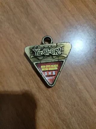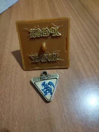 Set composto da una piramide e un amuleto a forma triangolare, entrambi a tema Yu-Gi-Oh!. L'amuleto presenta l'immagine di un drago nero metallico occhi rossi. Vintage.
