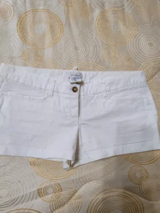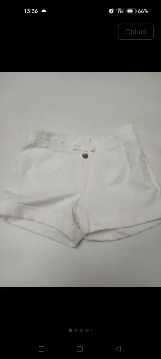 Bellissimi shorts bianchi per bambina, con un delicato motivo a pois. - Vita elasticizzata. - Dettaglio fiocco. - Tasca con bottone dorato.