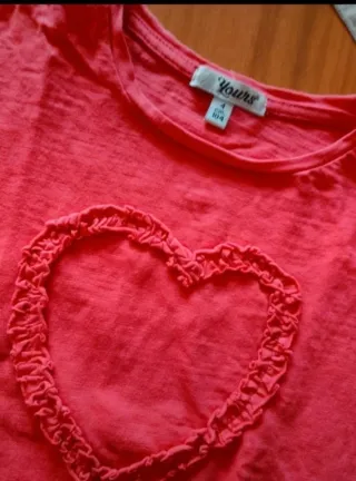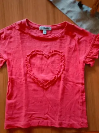 T-shirt rosa per bambina con un simpatico cuore decorativo sul davanti. Le maniche corte presentano un grazioso volant. - Colore: Rosa - Design: Cuore con volant - Maniche: Corte con volant