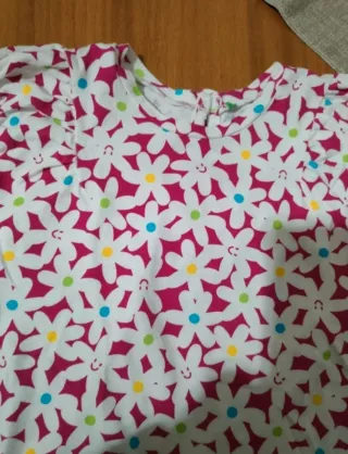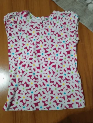 T-shirt Benetton per bambina con fantasia di fiori bianchi su sfondo fucsia. Maniche corte e girocollo. - Fantasia floreale. - Colori vivaci.