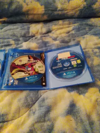 Due videogiochi per PlayStation 4, genere sportivo. - Un gioco di calcio con un calciatore in copertina. - Un altro gioco con personaggi in un ambiente urbano.