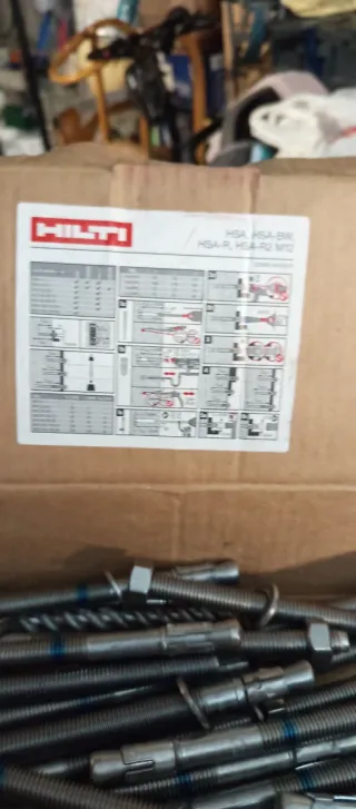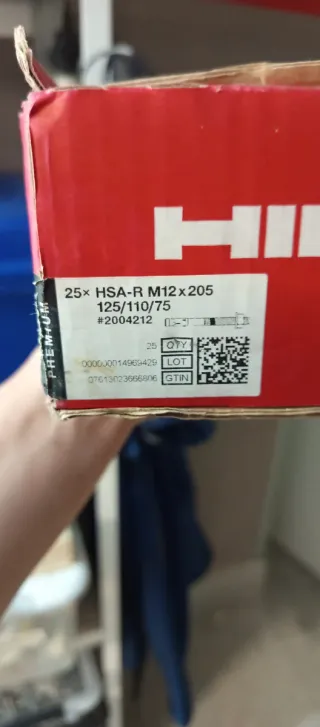 Tasselli Hilti HSA-R M12x205. - Quantità: 25 pezzi. - Codice lotto: 000000014969429. - Codice GTIN: 07613023666806.