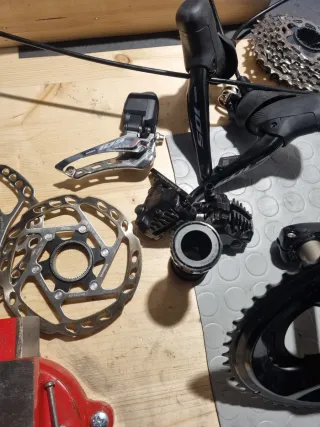 Vendo gruppo shimano 105 di2 12v completo. Smontato da bici nuova per upgrade a shimano ultegra. Completo di movimento centrale BSA o Pressfit, pedali shimano 105, dischi 160/140, pignoni 11-34, corone 52-36 e lunghezza pedivella 172.5