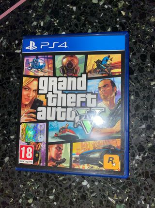 Gioco per PlayStation 4, Grand Theft Auto V. - Copertina con immagini iconiche del gioco. - Classificazione PEGI 18.