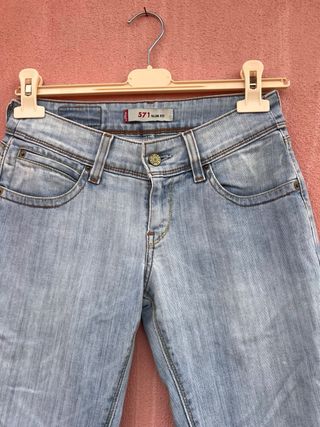 Jeans Levi's modello 571 Slim Fit. - Vestibilità slim. - Lavaggio azzurro chiaro. - Chiusura con zip e bottone.
