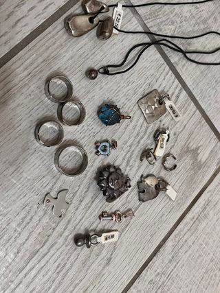 Lotto misto di bigiotteria, ideale per chi ama variare. - Collane con pendenti. - Anelli in metallo. - Ciondoli a tema (elefante, sole, chiave, tartaruga, uccellino). - Pietra azzurra incastonata Alcuni pezzi sono Argento 3€cadauno O per tutti i pezzi concordiamo per il prezzo per qualsiasi info o ulteriori foto scrivetemi