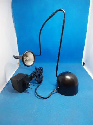 Lampada da tavolo anni 80 Hi Fi Luci design G. Medeot. La lampada è composta da una base con interruttore e un braccio snodabile che le permette di essere orientata in qualsiasi posizione. Perfettamente funzionante ed in ottime condizioni viene fornita completa di alimentatore e lampadina alogena. Rara. Venduta nello stato in cui si trova con la formula vista e piaciuta.