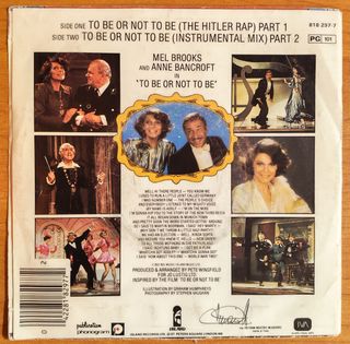 Disco in vinile 45 giri di Mel Brooks. - Titolo: To Be Or Not To Be (The Hitler Rap) Pts. 1&2. - Basato sul tema del film.
