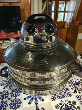 Forno elettrico da tavola Griglioso, ideale per grigliare e cuocere. Acquistato Dicembre 2024, utilizzato pochissime volte Accessori e libri ricette come in foto - Coperchio in vetro trasparente. - Struttura in acciaio inossidabile. - Manopole per impostare temperatura e tempo.