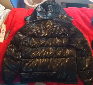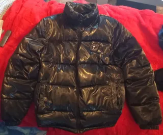 Giubbotto Trapstar lucido, un capo d'abbigliamento alla moda. - Design trapuntato. - Logo sul petto. - Cappuccio piccolo difetto interno nella manica non visibile dal esterno