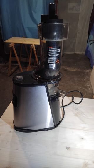 Estrattore di succo a freddo Kooper Vitabella Plus, ideale per preparare succhi freschi. - Design moderno con finiture in acciaio e nero. - Ampio contenitore per la polpa. - Tubo di alimentazione capiente.