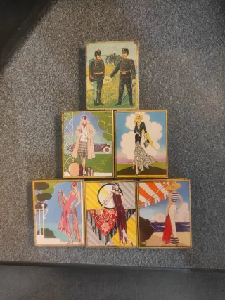 Set di scatoline in stile Art Decò, raffiguranti scene di moda. Perfette per conservare piccoli oggetti o come elemento decorativo. Scatolina figura Militare più vecchia e precedente delle Art Decò .Cannonieri Svizzeri. Tutte le scatoline misurano: Lunga. 5cm. Larga 4cm. Altezza 1cm. - Design Art Déco con figure femminili eleganti. - Marchio Lackerli Huus. - Motivi colorati e dettagli raffinati.
