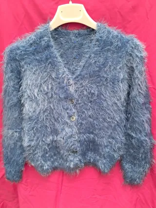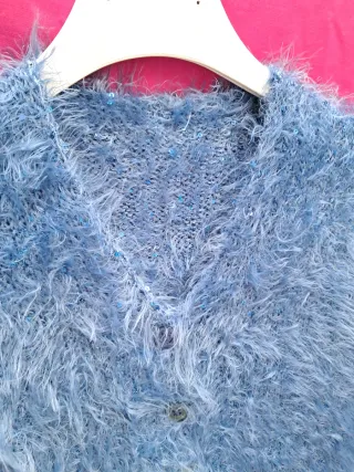 Morbido cardigan per bambina, perfetto per aggiungere un tocco di stile.colore avion - Tessuto soffice e peloso. - Dettagli con paillettes scintillanti. - Chiusura con bottoni.