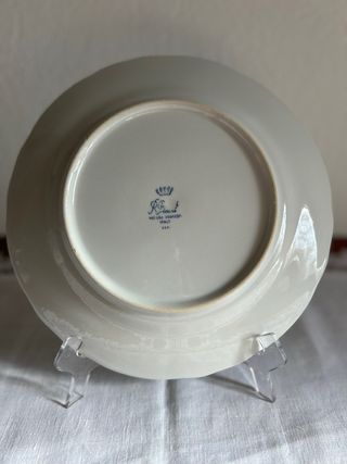1 piatto piccolo frutta/dolce in stile inglese, serie " Homeland" Grindley bianco/blu, mai usato ottime condizioni, cm 20 di diametro ( ultimi 6 disponibili)