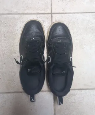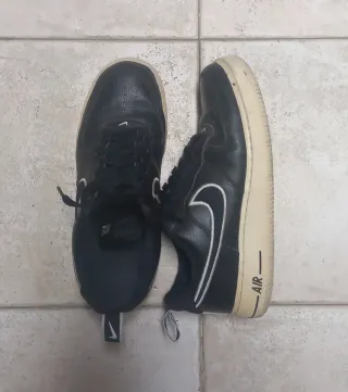 Scarpe sportive Nike modello Air Force 1. - Tomaia in pelle nera. - Logo Nike laterale bianco.