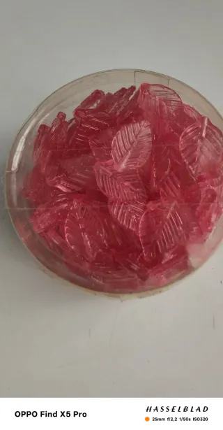 Deliziose foglie decorative in resina rosa, perfette per dare un tocco di colore e originalità alle tue creazioni. - Forma a foglia. - Colore rosa traslucido. - Materiale in resina.
