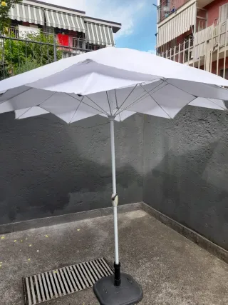 Ombrellone da esterno a doppio strato di copertura. Misure cm.280x260 altezza. Nuovo mai usato con cartellino e scatola. Si richiede ritiro di persona - Struttura in metallo. - Base in plastica.