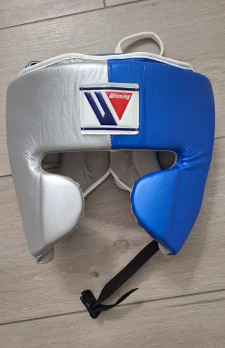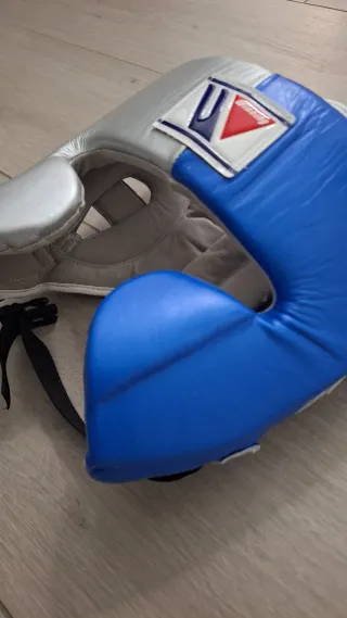 Casco da boxe Vincente in pelle, taglia L. Design bicolore argento e blu. - Materiale: Pelle - Colore: Argento e Blu - Marca: Vincente - Replica - Taglia: L