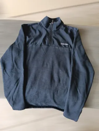 Felpa con zip corta da uomo Calvin Klein. - Logo Calvin Klein ricamato sul petto. - Collo alto con zip. - Tessuto mélange.