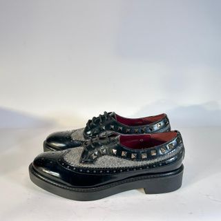 Eleganti scarpe stringate Ana Lublin con un design unico. - Tomaia in pelle lucida e tessuto. - Dettagli con borchie metalliche. - Suola platform robusta. - Fodera interna in tessuto bordeaux.