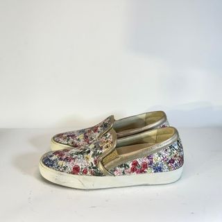 Scarpe Philippe Model da donna, taglia 40, con una vivace stampa floreale multicolore e dettagli dorati. - Stampa floreale multicolore. - Bordi dorati. - Design slip-on.