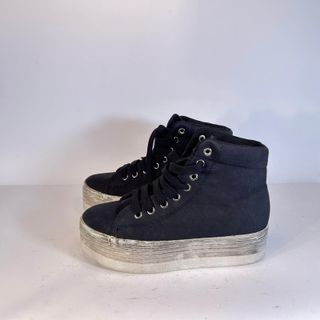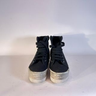 Scarpe alte JC PLAY in tela nera, con suola platform. - Chiusura con lacci. - Dettagli con occhielli metallici. - Suola platform a contrasto.