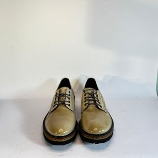 Eleganti scarpe stringate da donna in pelle, con una finitura che unisce tonalità dorate e marroni. Il design classico le rende adatte a diverse occasioni. - Tomaia in pelle lucida. - Suola platform a strati. - Chiusura con lacci.
