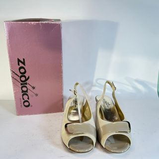 Eleganti scarpe da donna Zodiaco, perfette per ogni occasione. - Materiale scamosciato color beige. - Dettagli lucidi color oro. - Modello slingback con tacco basso. - Punta aperta. Taglie disponibili – 39/41