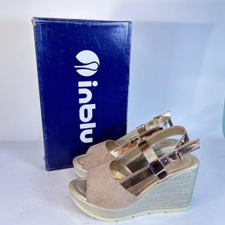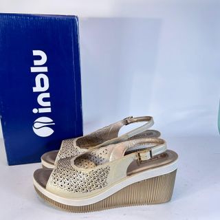 InBlu Sandali Zeppa Beige/Oro Tg 35 Nuove