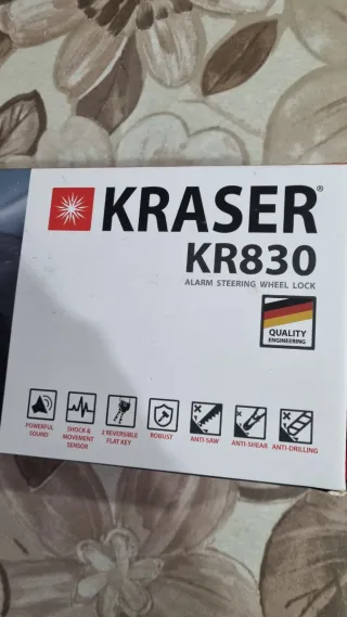Antifurto per volante Kraser KR830. - Modello: KR830 - Tipo: Blocco volante con allarme - Marca: Kraser - Materiale: Metallo resistente - Colore: Grigio/Argento