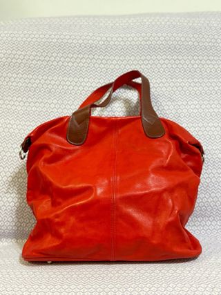 Borsa in pelle dal colore rosso vivace, con dettagli in pelle marrone. - Materiale: Pelle - Colore principale: Rosso - Dettagli: Manici in pelle marrone