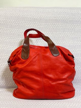 Borsa in pelle rossa con manici marroni