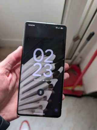 Smartphone Google Pixel 7 Pro con finitura grigio e dettagli argento. In ottime condizioni. Leggeri graffi sul display e qualche piccolo segno sulla scocca. Funziona perfettamente, tutto originale, batteria in ottimo stato.