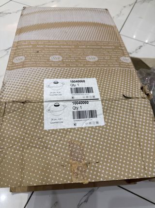 Set per fonduta mai usato, ancora imballato nella confezione originale