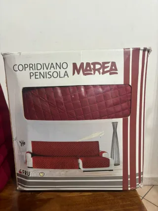 Copridivano per divano con penisola, colore bordeaux. - Marca: MAREA - Tessuto trapuntato - Made in Italy
