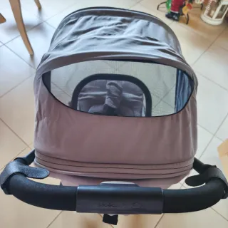 Passeggino Bebeconfort in colore grigio. - Capottina con zanzariera. - Maniglione imbottito.