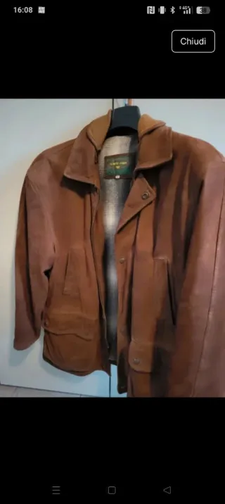 Elegante giaccone in renna, perfetto per un look casual ma raffinato. - Materiale: renna - Colore: marrone - Fodera interna a quadri - Chiusura con zip e bottoni - Tasche frontali applicate