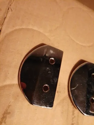 Set di 4 maniglie in metallo. - Materiale: Metallo lucido. - Design: Curvo con due fori per il fissaggio.