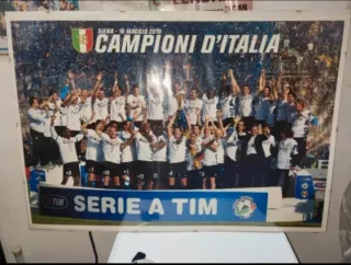 Poster celebrativo della vittoria dello scudetto da parte dell'Inter nella stagione 2009-2010. - Campioni d'Italia con data 16 Maggio 2010. - Immagine della squadra festante. - Logo Serie A TIM in basso.