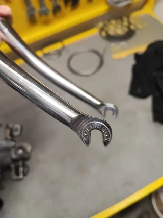 Forcella per bicicletta in acciaio con attacco filettato da 1". Con forcellini Columbus Canotto tagliato a 14.5cm Mai utilizzata Fondo di magazzino